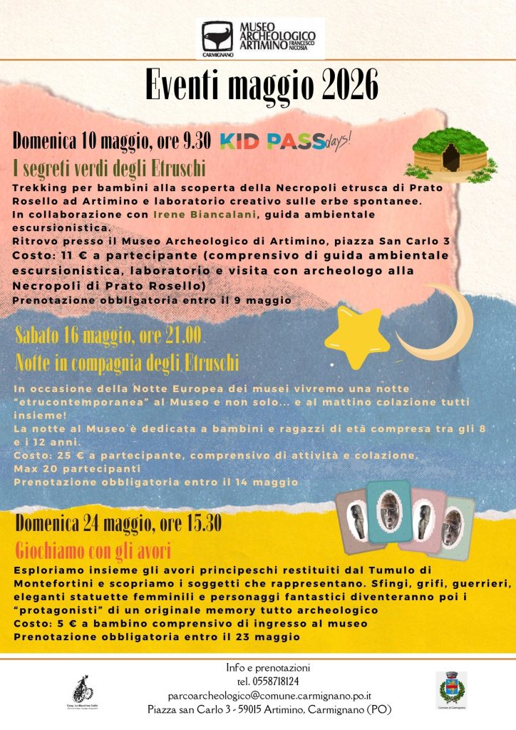 ore 22.00 saluti ai familiari ed inizio della “notte al museo”: visita al Centro Didattico di Artimino e alle opere esposte in occasione di CARMI.CO – Carmignano Contemporanea, attività e racconti a tema, sistemazione per la notte– - ore 8.00 sveglia