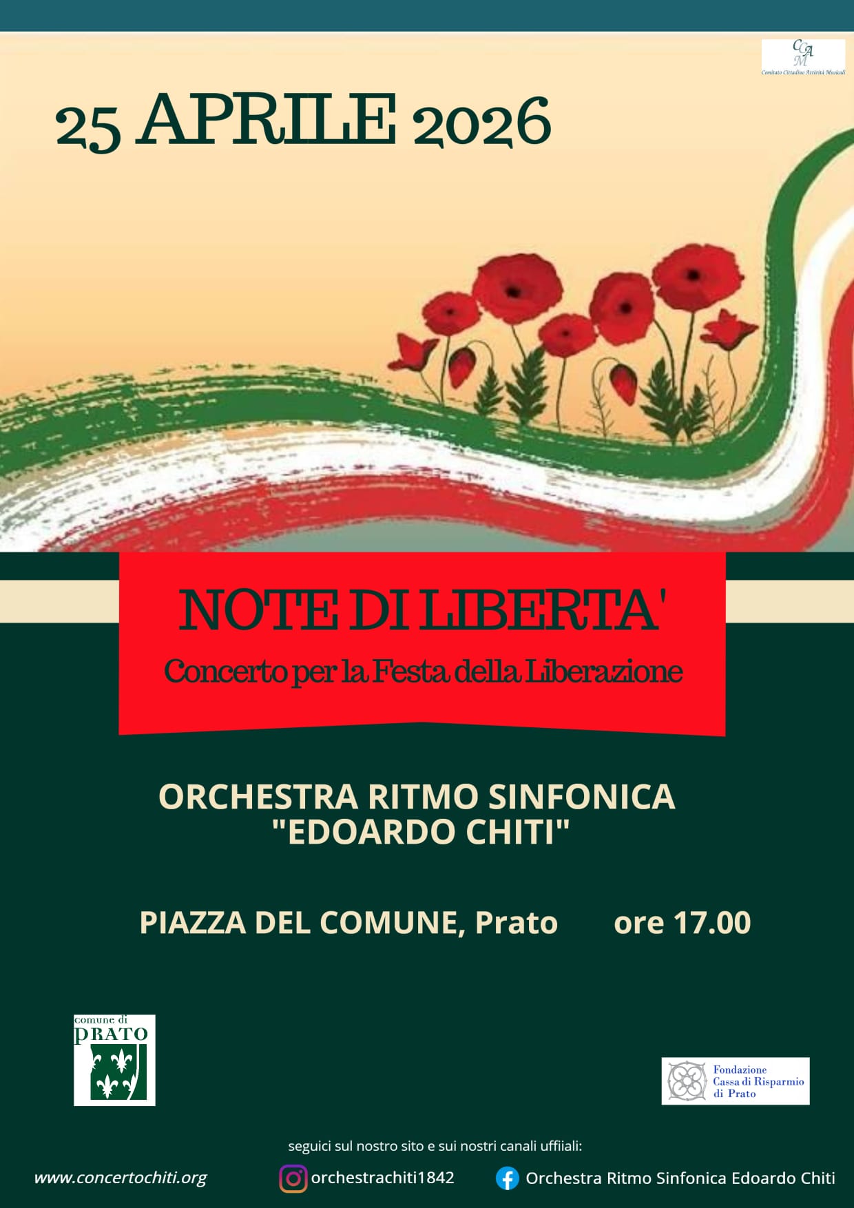 - ore 17.00 In Piazza del Comune "Note di libertà", il Concerto cittadino per la Festa della Liberazione, a cura dell’Orchestra Ritmo Sinfonica "Edoardo Chiti".